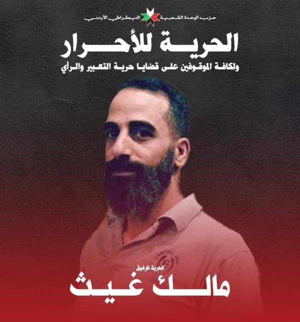 الوحدة الشعبية يطالب بالإفراج عن "مالك غيث" وإطلاق حرية كافة موقوفي ومعتقلي الرأي