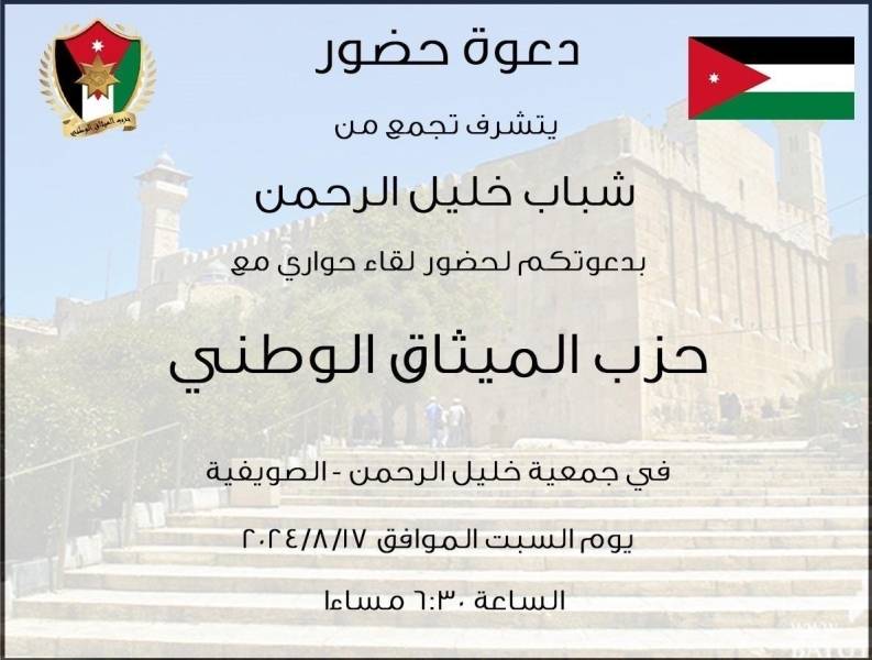 لقاء حوري لحزب الميثاق الوطني في (تجمع شباب خليل الرحمن) مساء السبت ..