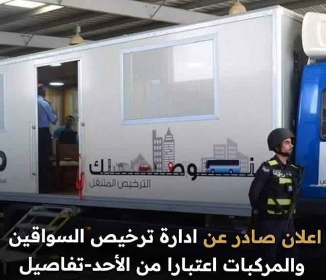 اعلان صادر عن ادارة ترخيص السواقين والمركبات اعتبارا من الأحد ..