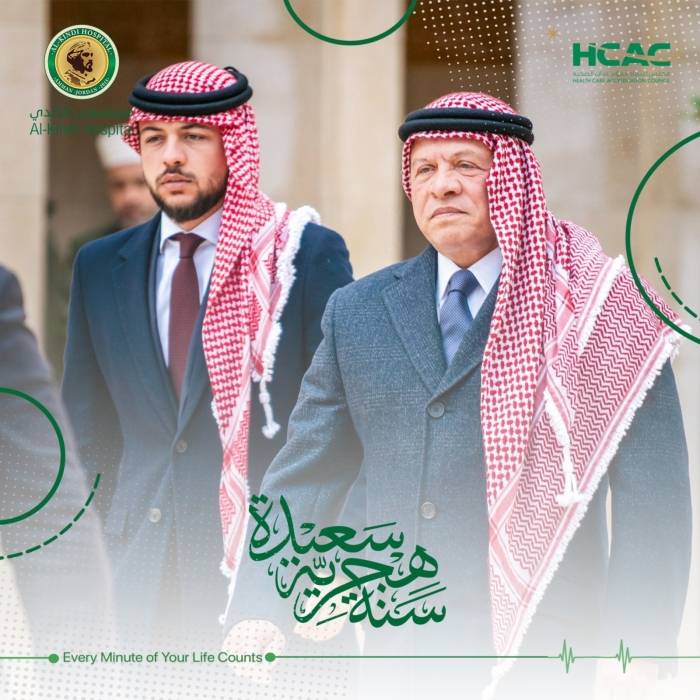 د. محمد خريس واسرة مستشفى الكندي يهنئون جلالة الملك وولي العهد بحلول العام الهجري الجديد