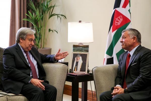 الملك وغوتيريس يؤكدان ضرورة توفير الحماية للعاملين بالإغاثة بغزة
