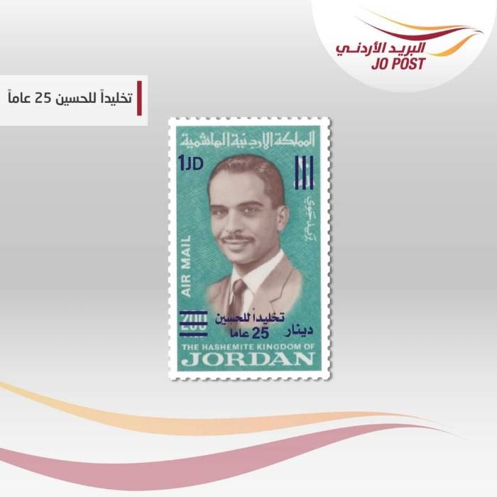 البريد الأردني يوشح طابعا بريديا بعنوان تخليداً للحسين 25 عاماً
