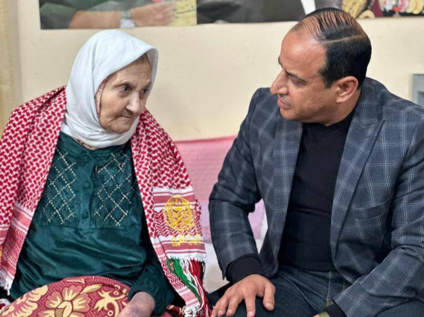 وفد من قيادة المستشفى الميداني الأردني الخاص نابلس/١ يزور سيدة عالجت جنود أردنيين عام 1967.