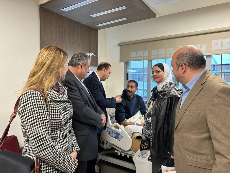 اعضاء الميثاق الوطني يزورون مصابين غزة في مدينة الحسين الطبية ..