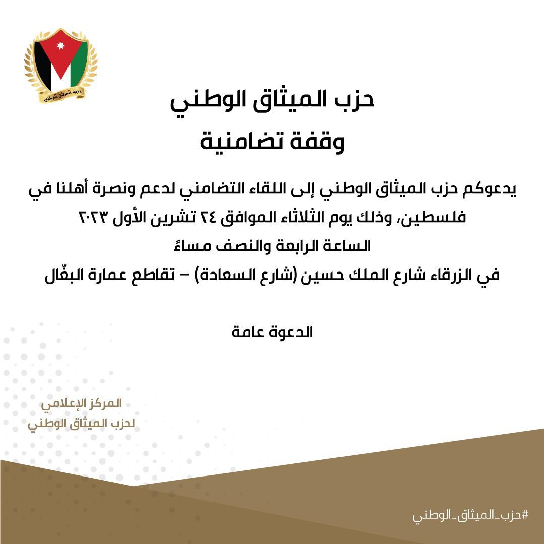 بدعوة من حزب ميثاق الوطني .. الزرقاء تواصل انتفاضتها "الثلاثاء" تضامناً مع اهلنا في فلسطين .. الدعوة عامة