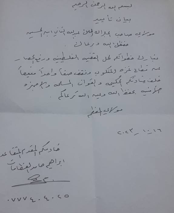 بيان صادر عن عشيرة السلايطه : نؤيد مواقف جلالة الملك في دعمه للقضية الفلسطينية