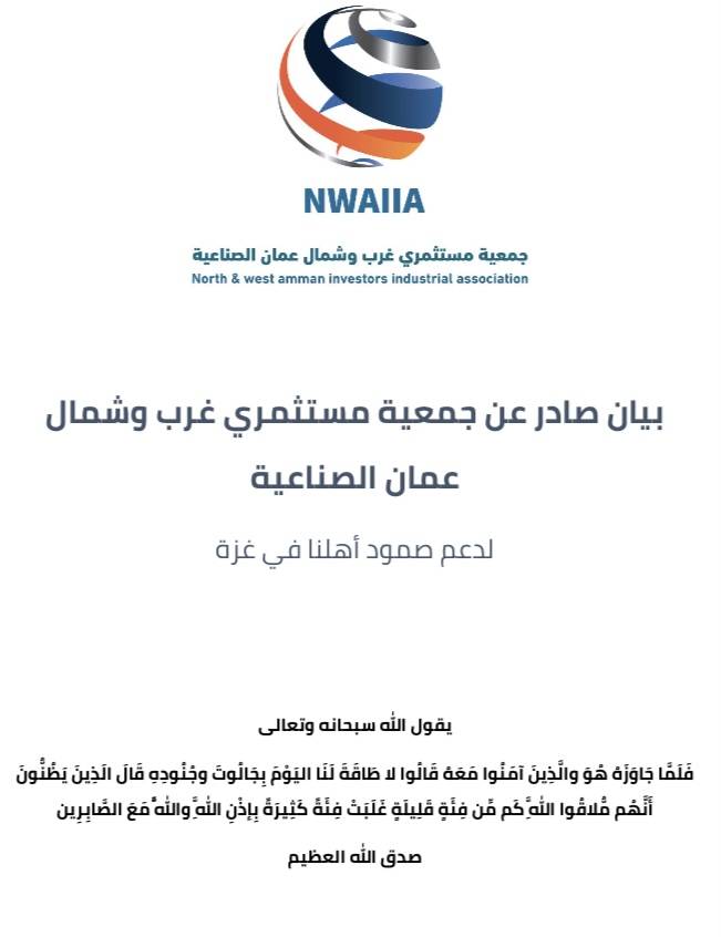 بيان صادر عن جمعية مستثمري غرب وشمال عمان الصناعية ..