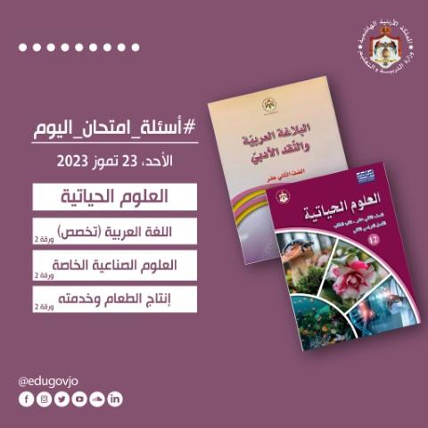 التربية تنشر اسئلة امتحان التوجيهي لليوم الأحد