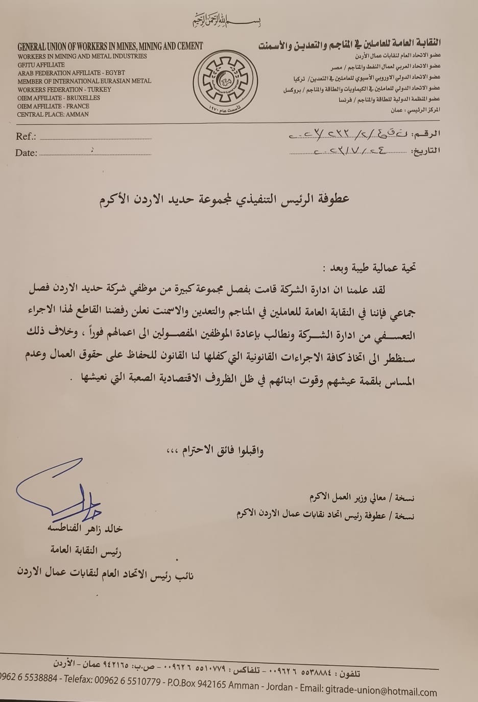 صور .... عمال حديد الاردن ينفذون احتاجا والفناطسة يستهجن الفصل