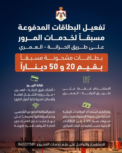 إطلاق بطاقات الدفع المسبق لخدمات طريق (الحرانة – العمري): سرعة في العبور وحلول دفع رقمية متطورة