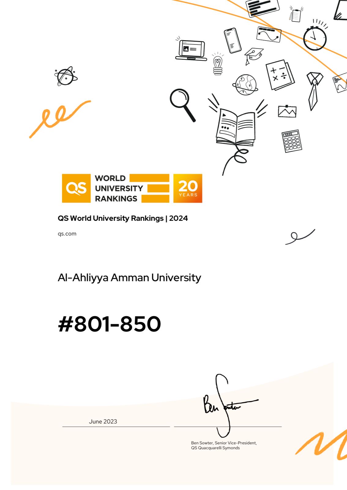 "العملاقة" عمان الأهلية في المرتبة الأولى على الجامعات الأردنية الخاصة .. وضمن أفضل ألف جامعة عالمياً في تصنيف كيو أس 2024