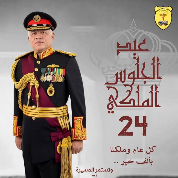 أسرة مستشفى الجامعة الأردنية تُهنّئ جلالة الملك بعيد الجلوس الملكي الرابع والعشرين..