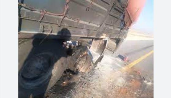 اشتعال إطارات شاحنة بسبب المسير لمسافات طويلة