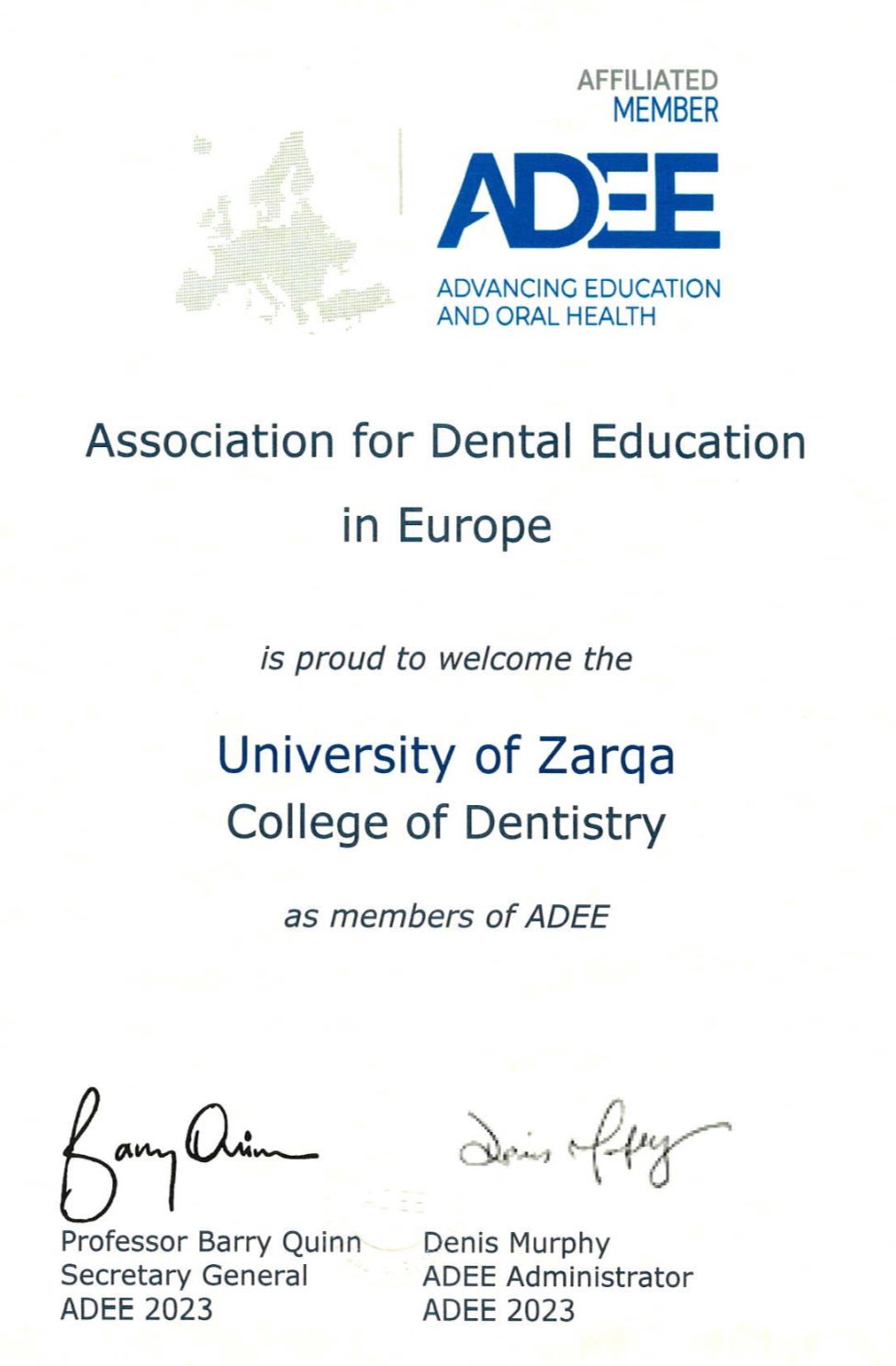 طب الأسنان بجامعة الزرقاء تحصل على عضوية الاتحاد الأوروبي لتعليم طب الأسنان..