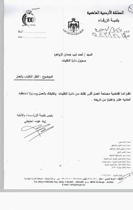 تنقلات وتعيينات في بلدية الزرقاء (تفاصيل)..