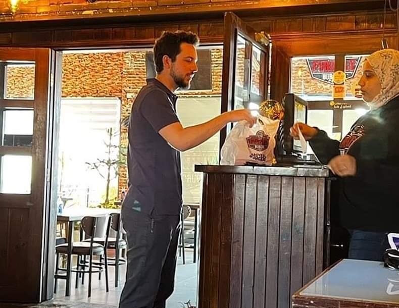 بعد أن طلب هاتفيا باسم “حسين”.. ولي العهد يستلم بنفسه وجبات من أحد مطاعم العقبة ..