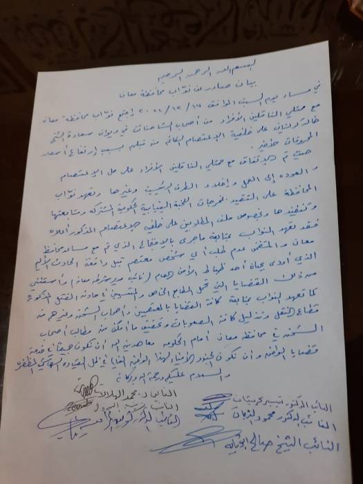 نواب معان: اتفاق لحل الاعتصام والعودة للعمل (وثائق )..
