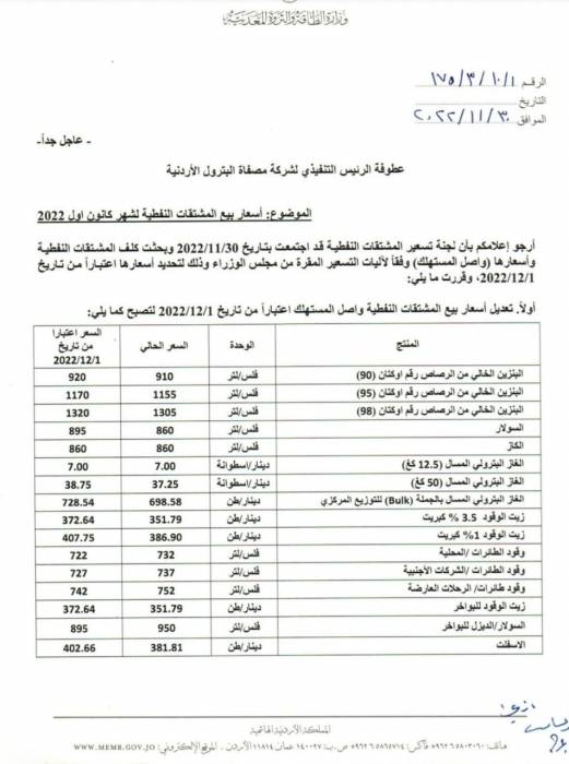 تثبيت سعر الكاز ورفع البنزين والديزل لشهر كانون أول ..