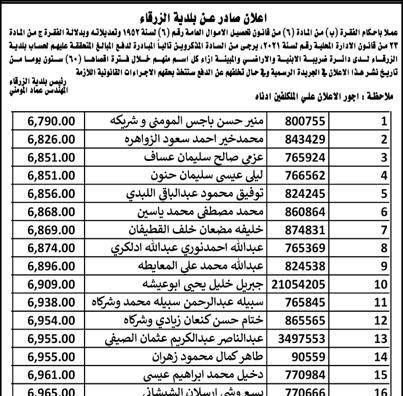 بلدية الزرقاء تنشر الدفعة الخامسة من المكلفين وتتوعد باجراءات حازمة للمتخلفين ..