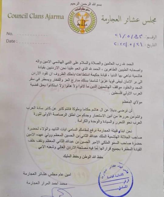 عشائر العجارمة : لن نرضى بديلا عن آل هاشم حاما وملوكا فانتم كابر عن كابر سادة العرب
