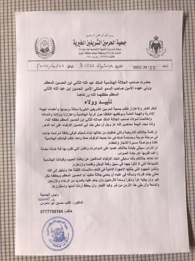 يوسف الديريه : سر يا سيدي ونحن من خلفك وأدام الله الأمن والأمان تحت ظل القياده الهاشميه