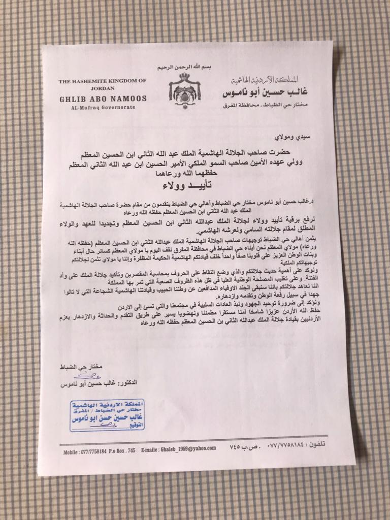 عشائر القراله : التاييد والولاء المطلق الناصع لجلالة الملك والعرش الهاشمي