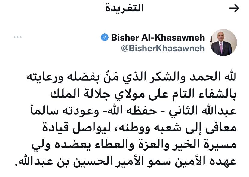 د. بشر الخصاونه يُغرد مُهنيء بسلامة سيد البلاد