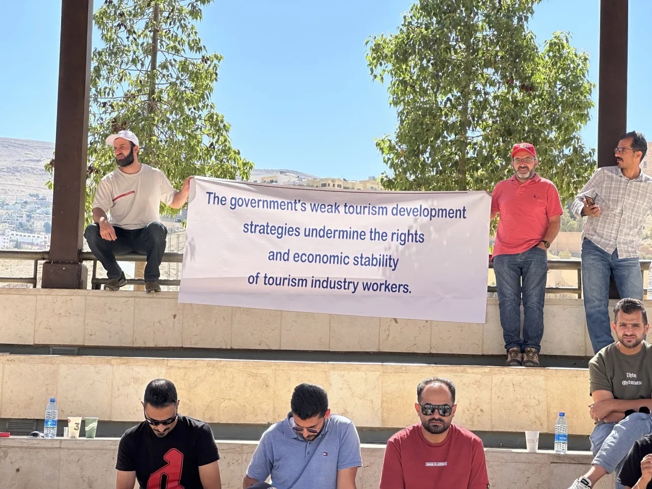 أدلاء السياحة ينظمون وقفة احتجاجية في ساحة مركز زوار البترا - صور