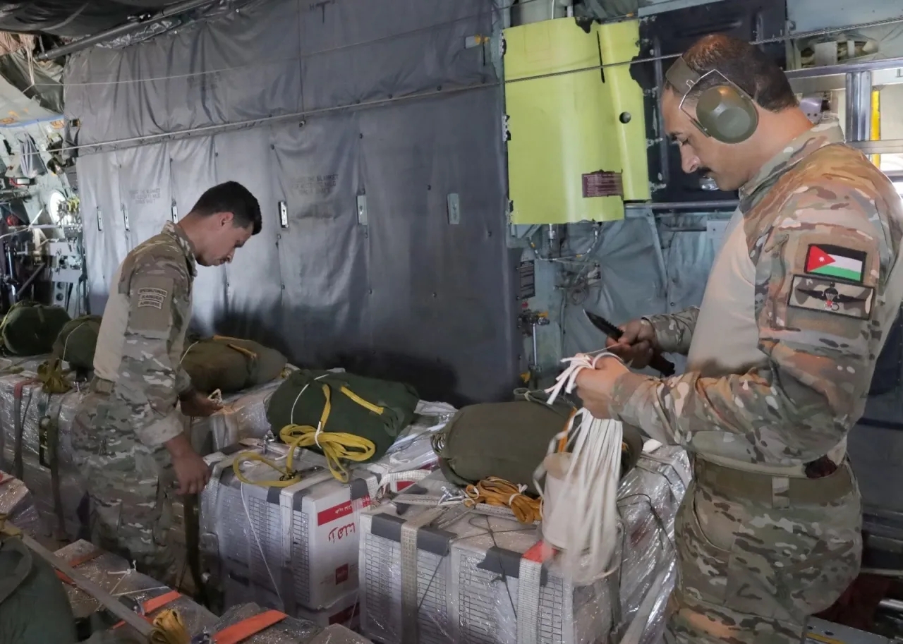 40 طناً من المساعدات الغذائية تُسقطها طائرات أردنية ودولية على غزة - صور