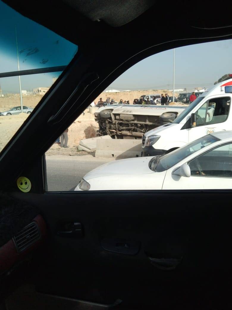 للمرة الثانية خلال 48 ساعة : انقلاب حافلة على اتستراد الزرقاء .. ومطالبات بتشديد الرقابة من دائرة السير المركزية/صور