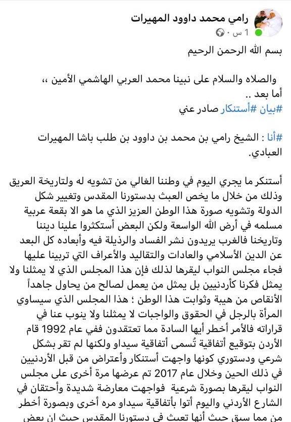 الشيخ رامي المهيرات يهاجم التعديلات الدستورية ، و يسأل اين دين الدولة ؟