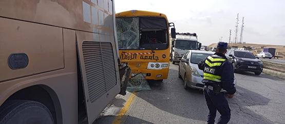 7 إصابات بتصادم حافلتين امام جامعة الزرقاء