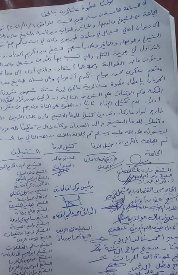 عطوة عشائرية بالحق بين عشيرة الطوالبة وصيام في العاصمة عمّان...
