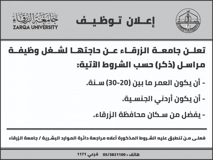 جامعة الزرقاء الخاصة : إعــلان تـوظـيــف..