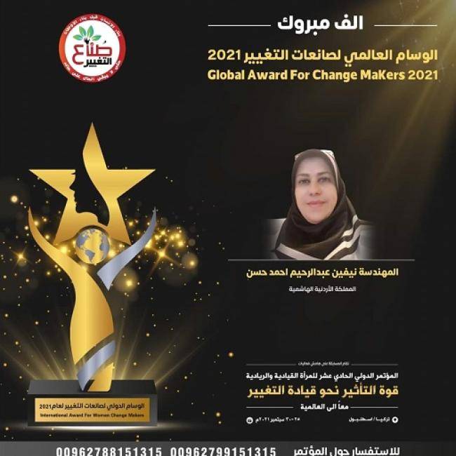 أردنية تحصل على الوسام العالمي لصانعات التغيير لعام 2021