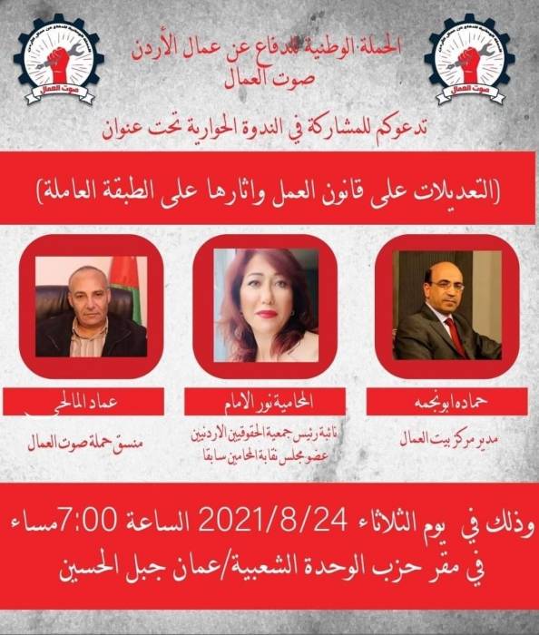 ندوة حوارية بعنوان "التعديلات على قانون العمل واثارها على الطبقة العاملة " .. تفاصيل