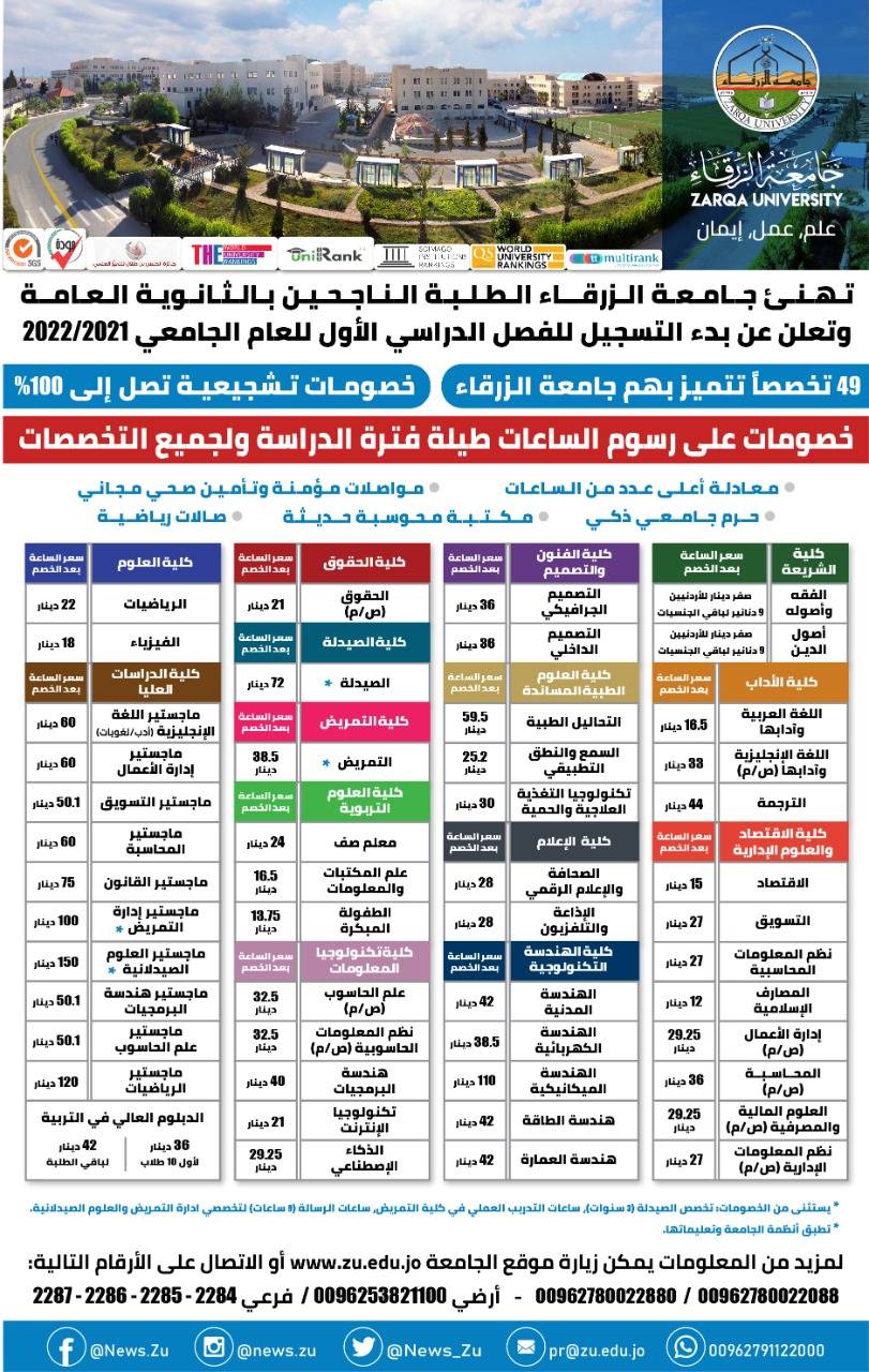 تـهـنـئ جــامـعـة الـزرقـــاء الـطـلـبـة الـنـاجـحـيـن بـالـثـانـويـة الـعـامــة...