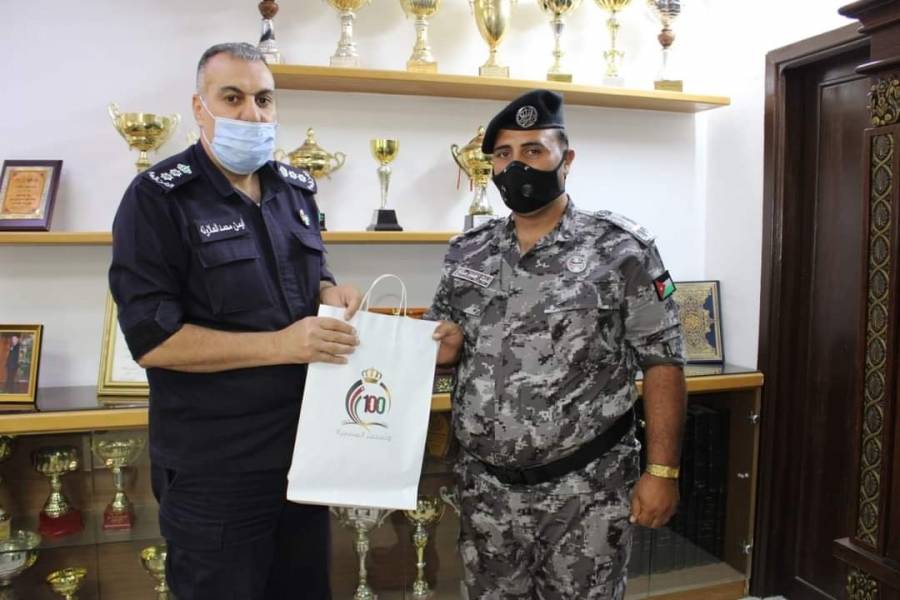 مدير شرطة الزرقاء العقيد أيمن العلاونه يكرم وكيل من قوات الدرك لأمانته..