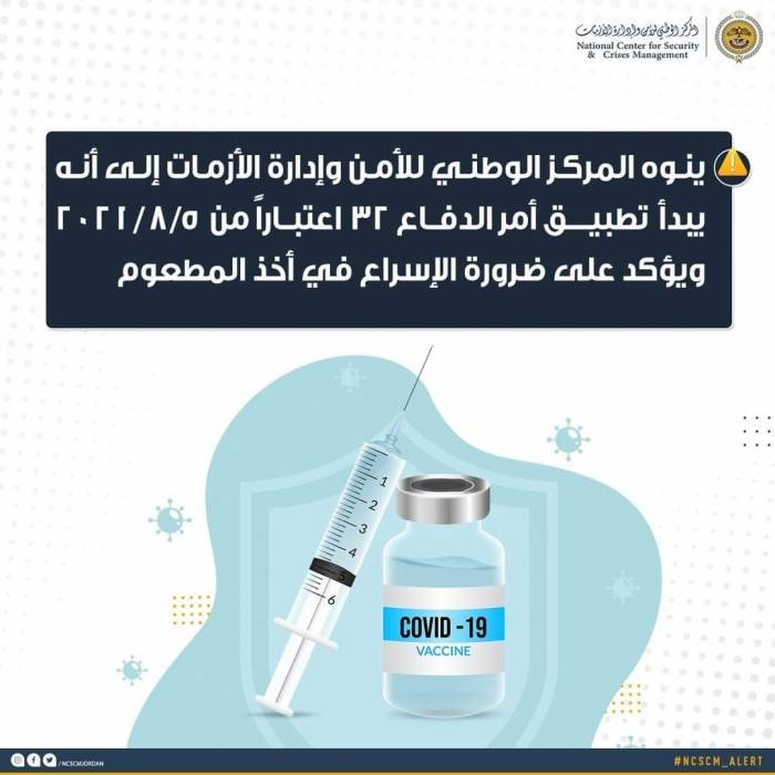 تعميم هام من المركز الوطني للأمن وإدارة الأزمات..