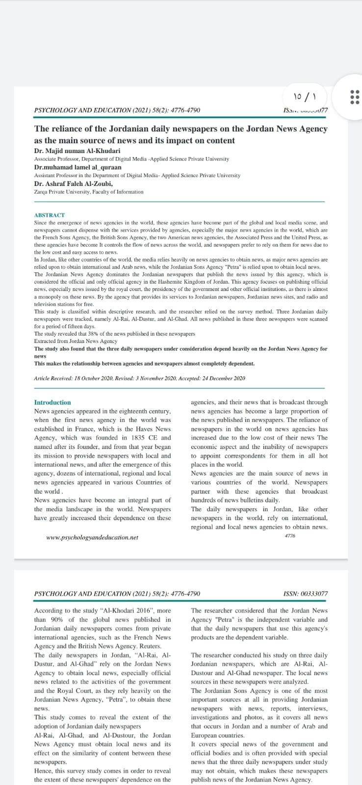 دراسة تؤكد اعتماد الصحف الأردنية على بترا ووكالات أجنبية في الحصول على الإخبار