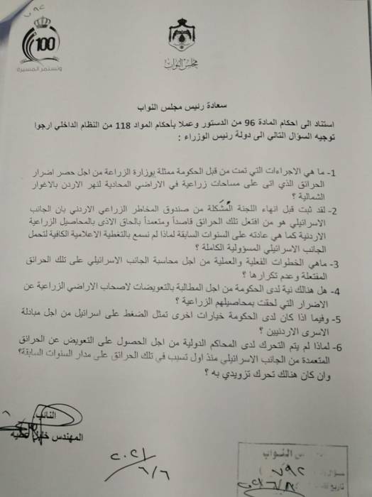النائب عطية يوجه أسئلة تخص ملفات وزارة الزراعة ومحاسبة دولة الكيان الصهيوني ..