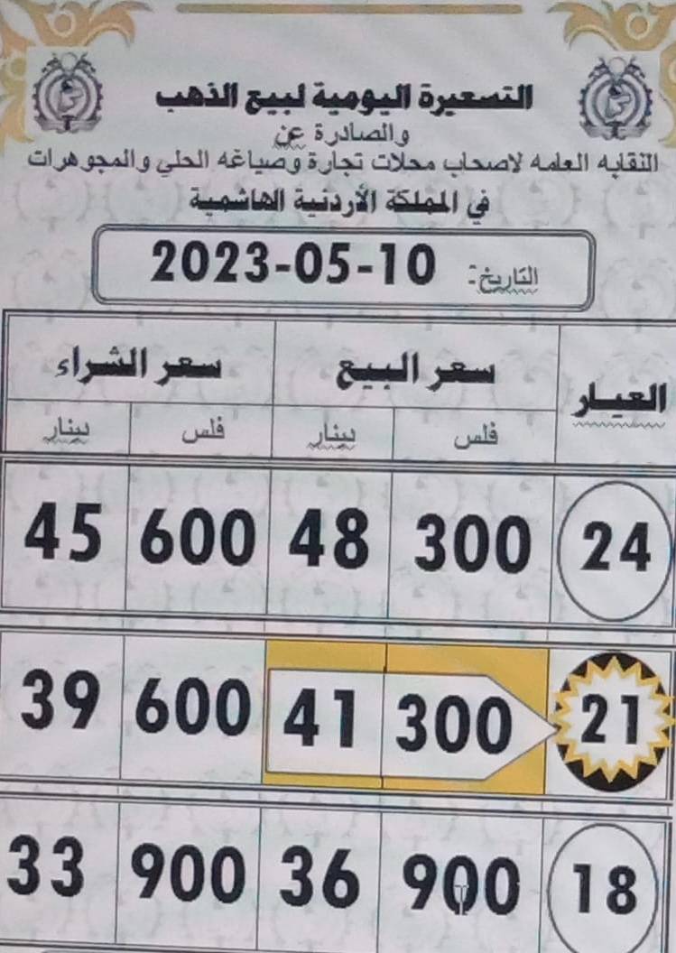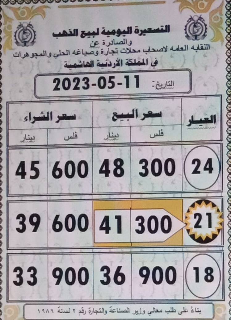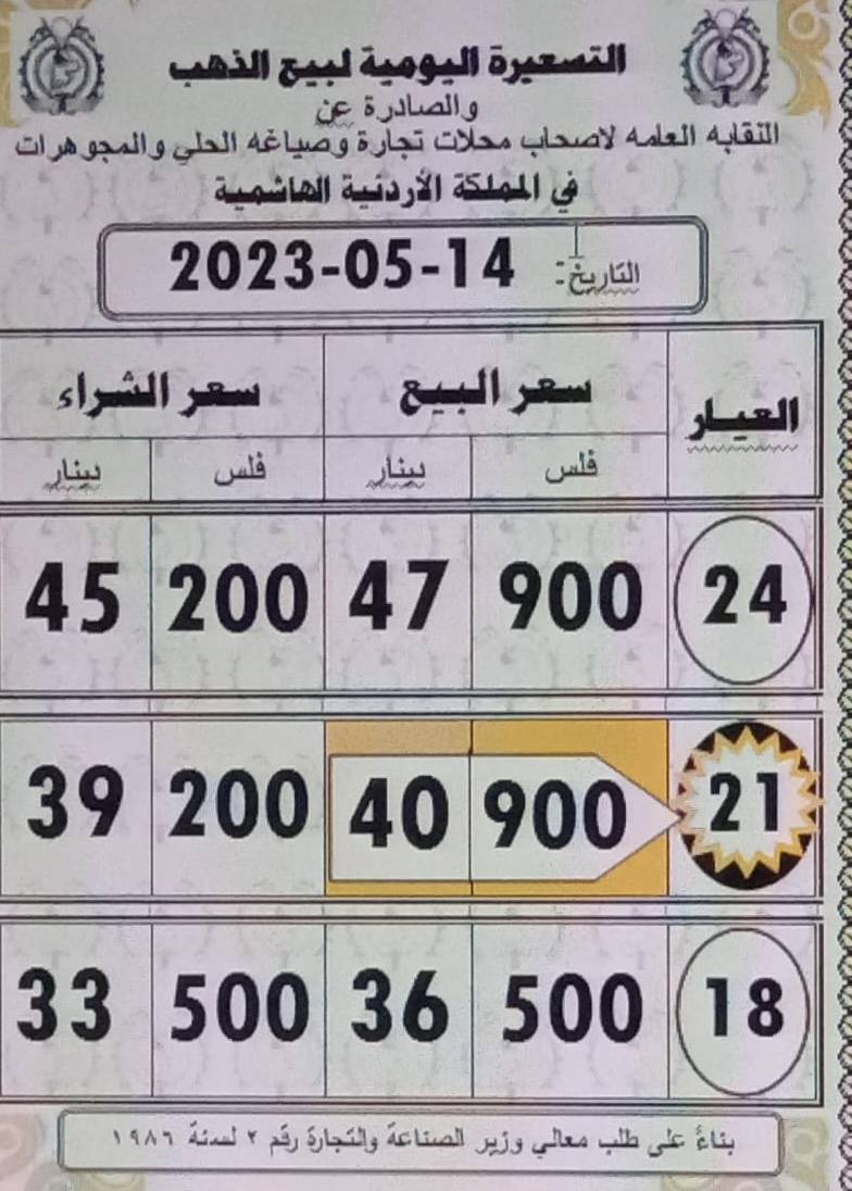 تسعيرة الذهب الرسمية ليوم الاحد 5/14