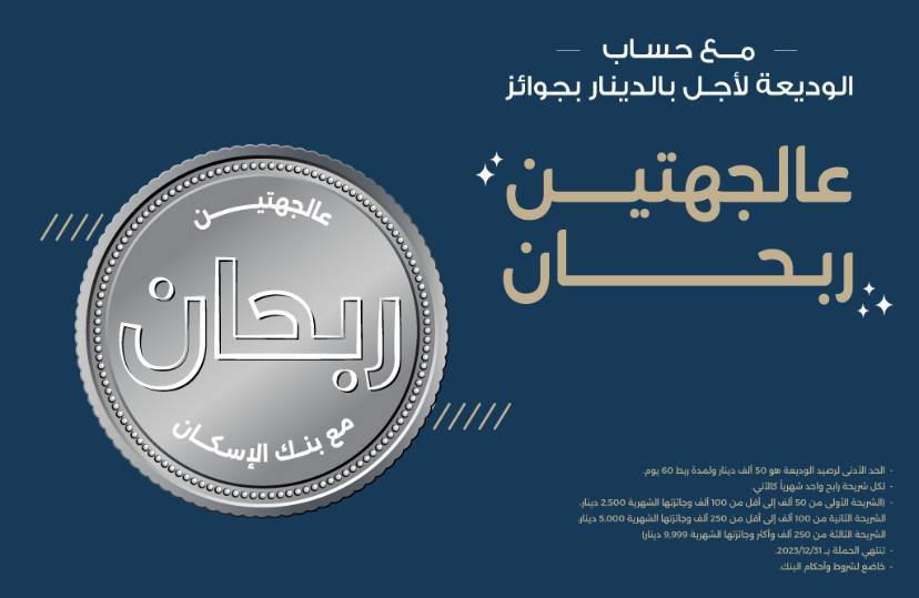 بنك الإسكان يطلق حملة جوائز لمنتج "حسابات الودائع لأجل بالدينار بجوائز" لعام 2023