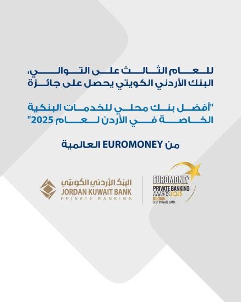 للعام الثالث على التوالي البنك الأردني الكويتي يفوز بجائزة "أفضل بنك للخدمات البنكية الخاصة في الأردن لعام 2025"من يوروموني العالمية