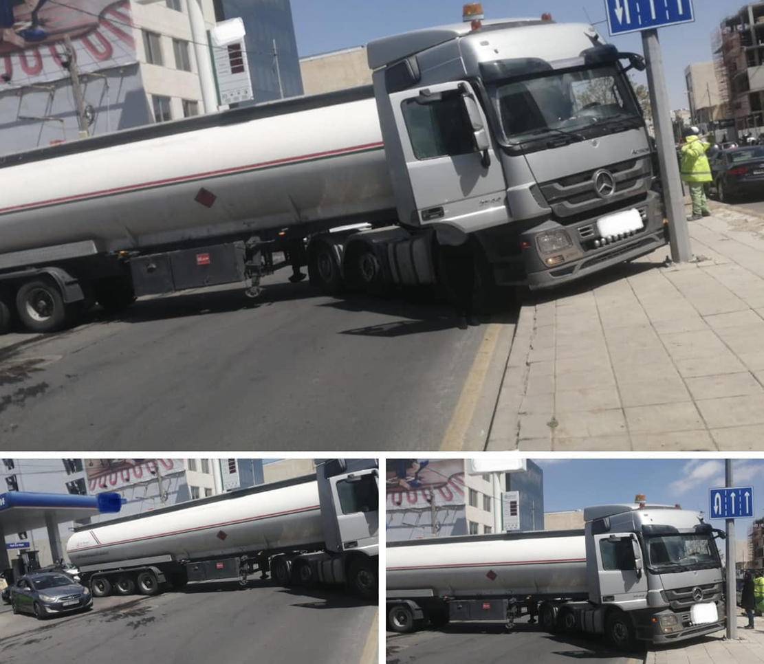 صهريج معطل يغلق طريقا في خلدا