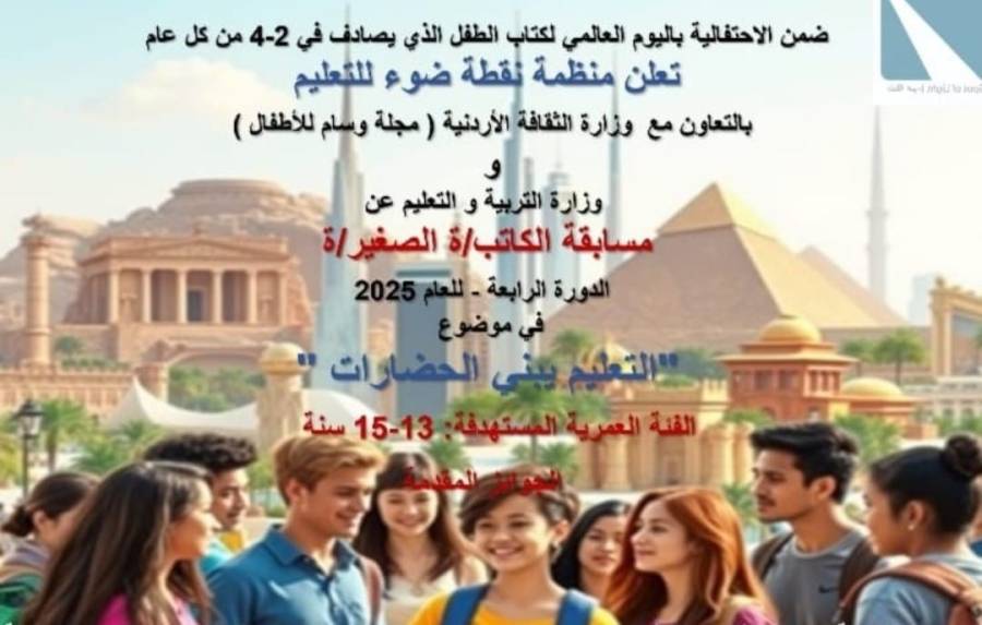 منظمة نقطة ضوء للتعليم تطلق مسابقتها الرابعة للكاتب الصغير بعنوان “ التعليم يبني الحضارات ”