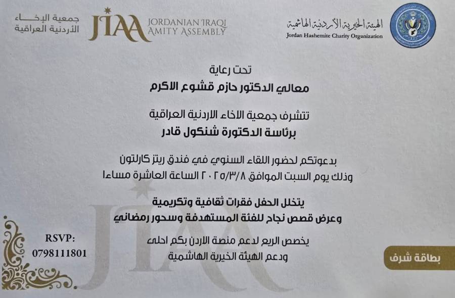 قشوع يرعى الاحتفال الخيري لجمعية الاخاء الاردنية العراقية