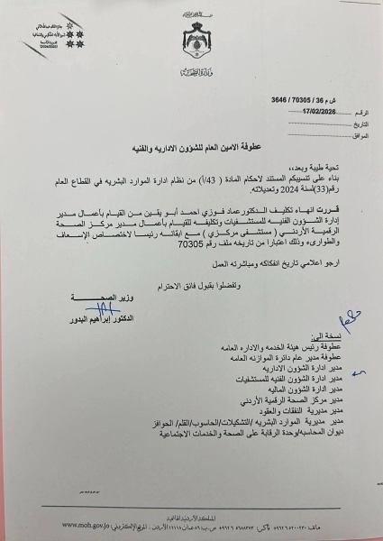 البدور يقود تغييرات إدارية واسعة في وزارة الصحة استكمالًا لمسار الإصلاح والتحديث