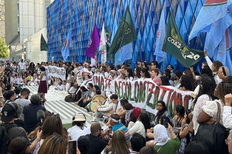 مظاهرة تضامنية مع غزة خلال مؤتمر المناخ في دبي