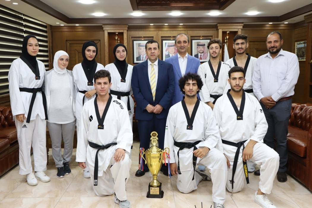 رئيس جامعة البلقاء التطبيقية يكرم فريق التايكوندو المشارك في بطولة الجامعات